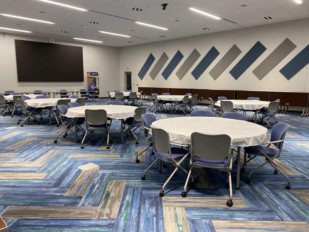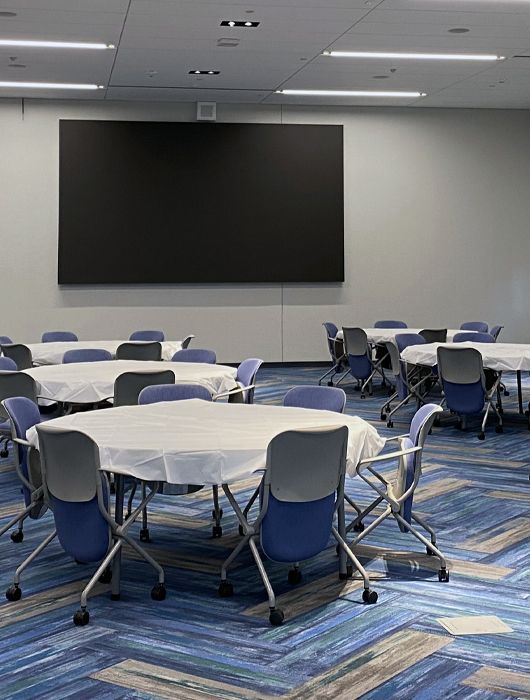 - Ability to divide the space into two large breakout rooms